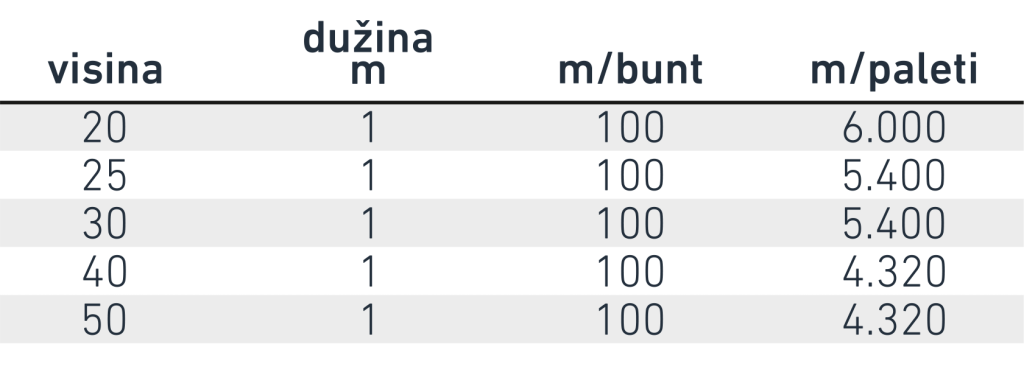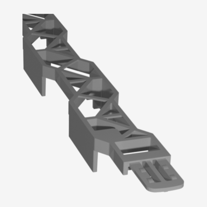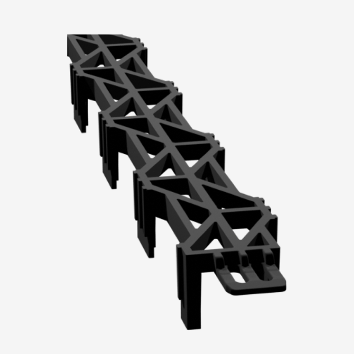 Veliki i stabilni plastični distancer (odstojnik), za donju armaturu. Za srednje i teške armature. Dobar protok betona zbog velikih bočnih I gornjih otvora. Isporučuje se u dužini od 2m; spojena dva komada od 1m koji se mogu rastaviti. Izrađen od 100% recikliranog materijala.